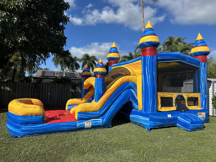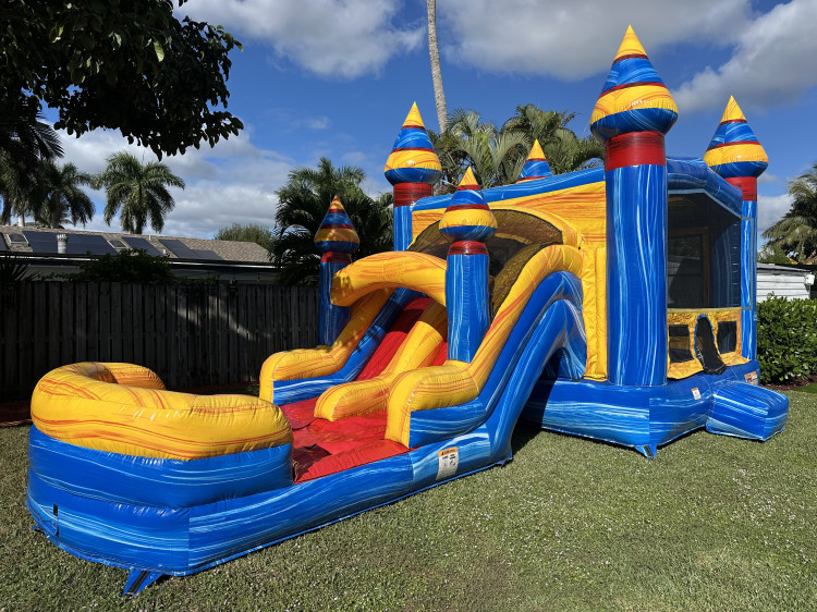 Cool down your next party with the Melting Arctic Dual Lane Combo, the perfect blend of winter vibes and summer fun. With its icy design and fiery slides, this inflatable brings a unique twist to any celebration.