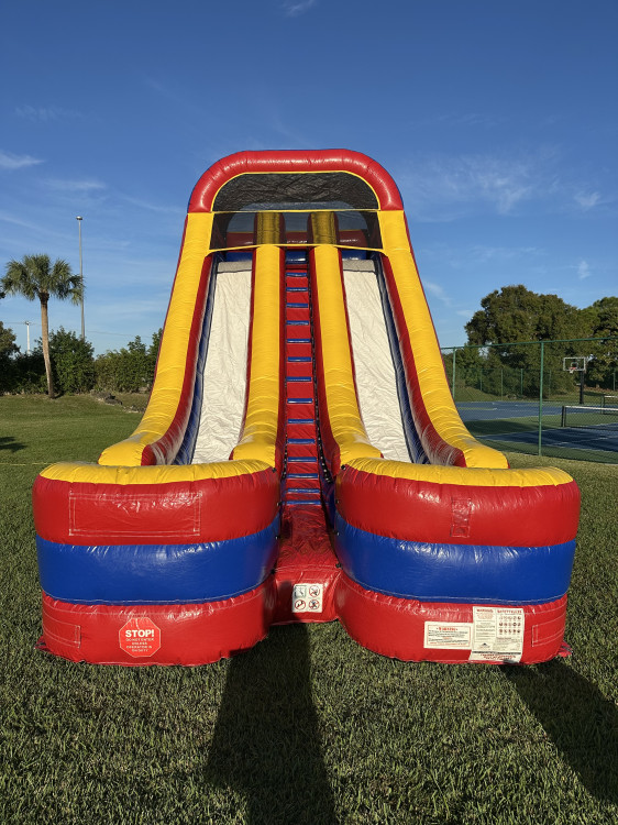 Perfect for schools churches festivals and backyard parties this red yellow and blue giant turns heads and cranks up the fun. Whether you're hosting a large crowd or just want maximum visual impact this dry-only unit brings adrenaline and excitement like nothing else.